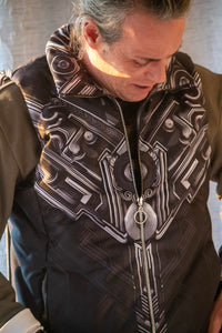 Tailored for Strength Created for a muse who values understated power and unique geometry. The LUIS Vest features a custom-engineered monochrome pattern, born from a blend of AI tools and traditional craftsmanship. Designed to be bold, functional, and entirely one-of-a-kind. Because family deserves a brand of its own.