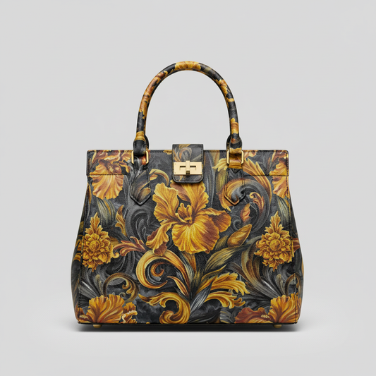 Golden Iris Noir — Luxury Seamless Pattern for Wallpaper, Textile & Apparel | Hand-painted Premium Design