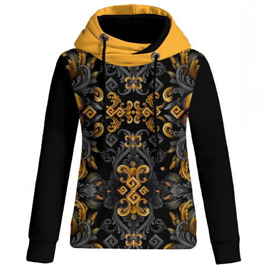 Sudadera con capucha de patchwork para mujer Golden Iris — Patrón de lujo sin costuras | Diseño premium pintado a mano